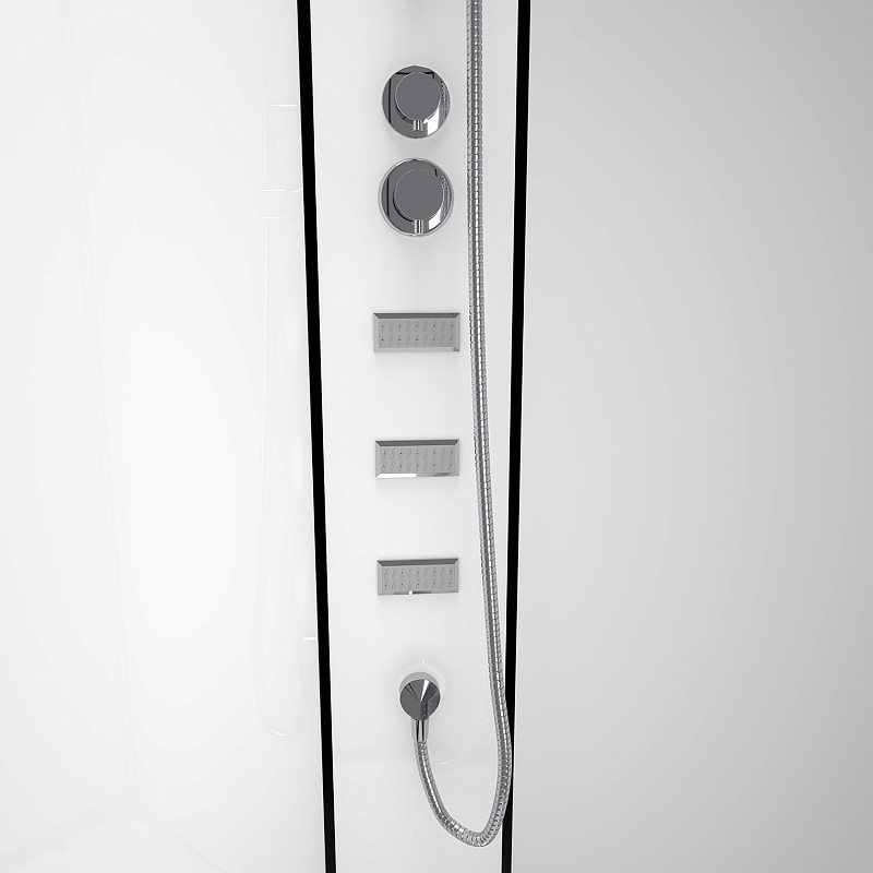 CS-21811-100 Душевая кабина  100x100x(190+15)см с низким поддоном 15см, прозрачное закаленное стекло 5 мм,задние стеклянные стенки БЕЛЫЕ, профиль черный-мат., верхний душ, хромированный ручной душ + шланг для душа + хромированный держатель, кронштейн для душа. (3 места)