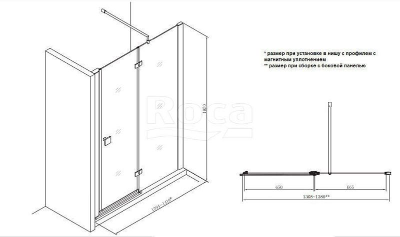 —Душевая дверь Roca METROPOLIS распашная 140х195, толщина полотна 8мм универсальная, цвет профиля хром