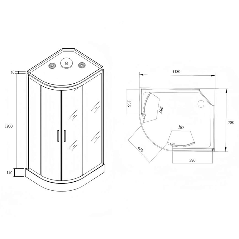 •  Размеры: 1180х780х2080 мм – оптимальное решение для просторных ванных комнат, обеспечивающее максимальный комфорт.