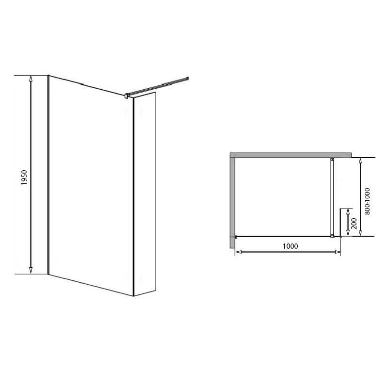 Душевая перегородка Loranto 100x195 Walk-in. Доп.створка 20см. Регулируемый кронштейн 80-100 Прозрачное стекло 6 мм. Профиль Хром (CS-L801 100)