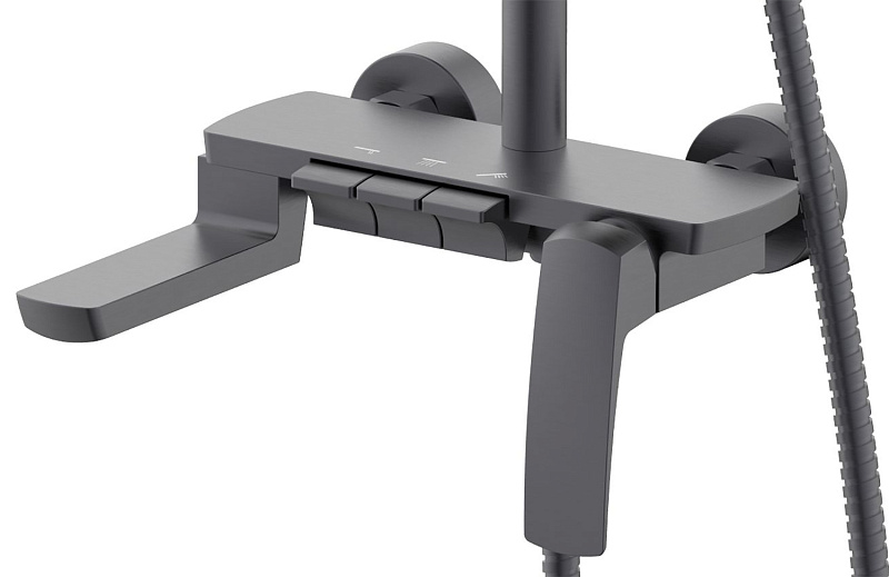 —Душевая система Azario Conda с квадратным тропическим душем, керамический картридж, шланг 150 см, графит (AZ-K2311GR)
