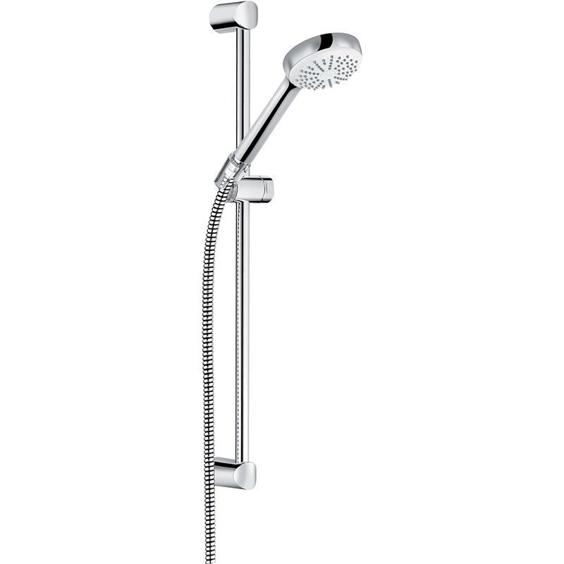 В комплекте поставки: ручная душевая лейка, держатель, шланг, настенная штанга, комплект креплений.