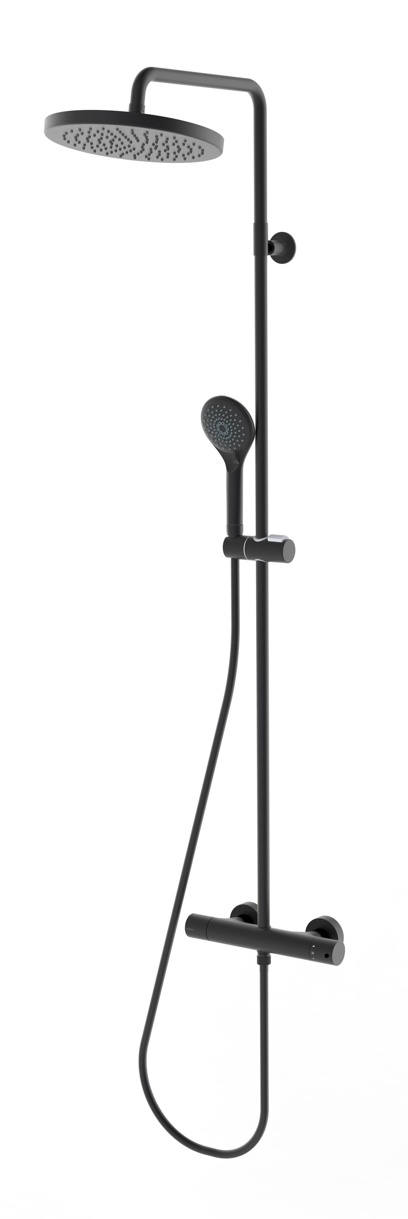 —Душевая стойка Bossini ELIOS с термостатическим смесителем, верхний душ Ø250 мм., ручной душ с 3 режимами, цвет: черный матовый (L10172.073)
