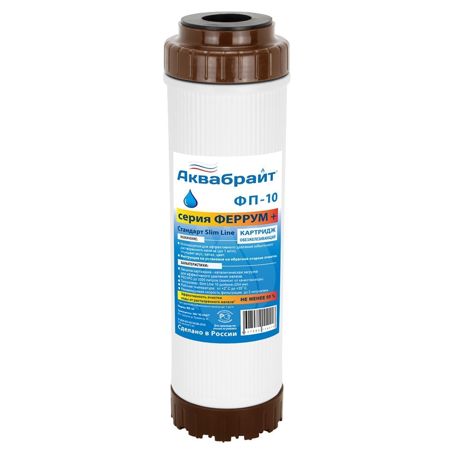 —Картридж для удаления железа из воды АКВАБРАЙТ Slim Line 10", засыпка фильтрующий материал "МФУ" (ФП-10)