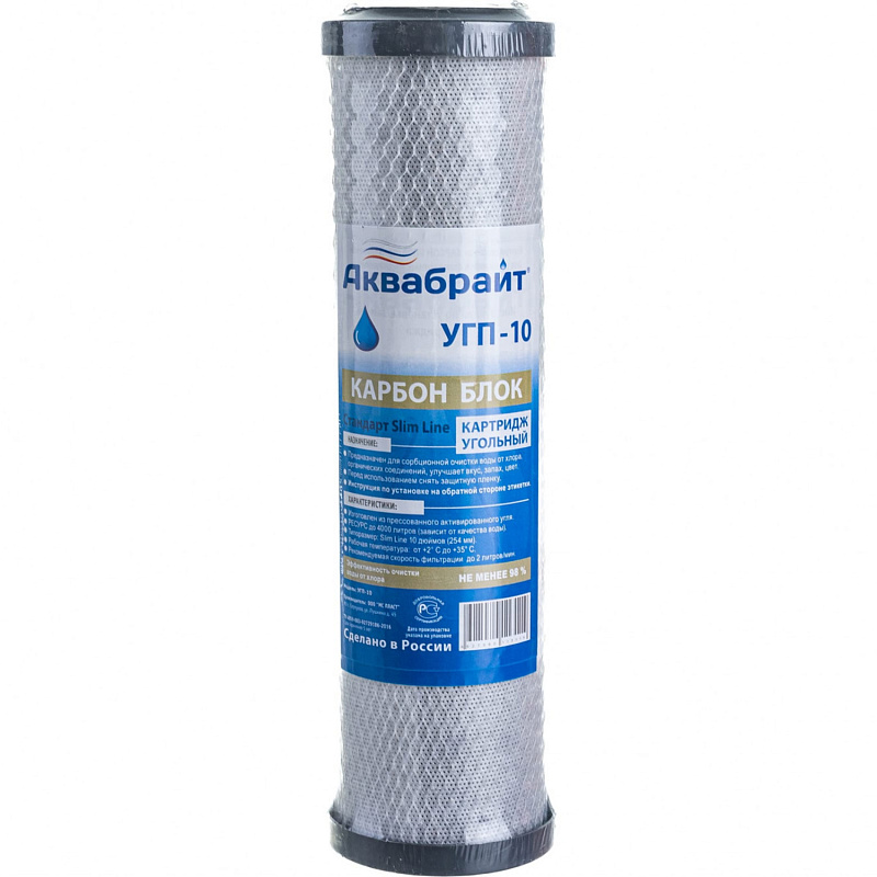 —Картридж (прессованный уголь) для очистки воды АКВАБРАЙТ, Slim Line 10", Карбон Блок, ресурс 4000 л (УГП-10)