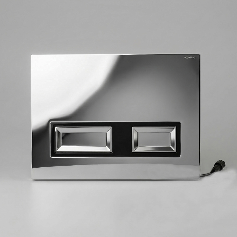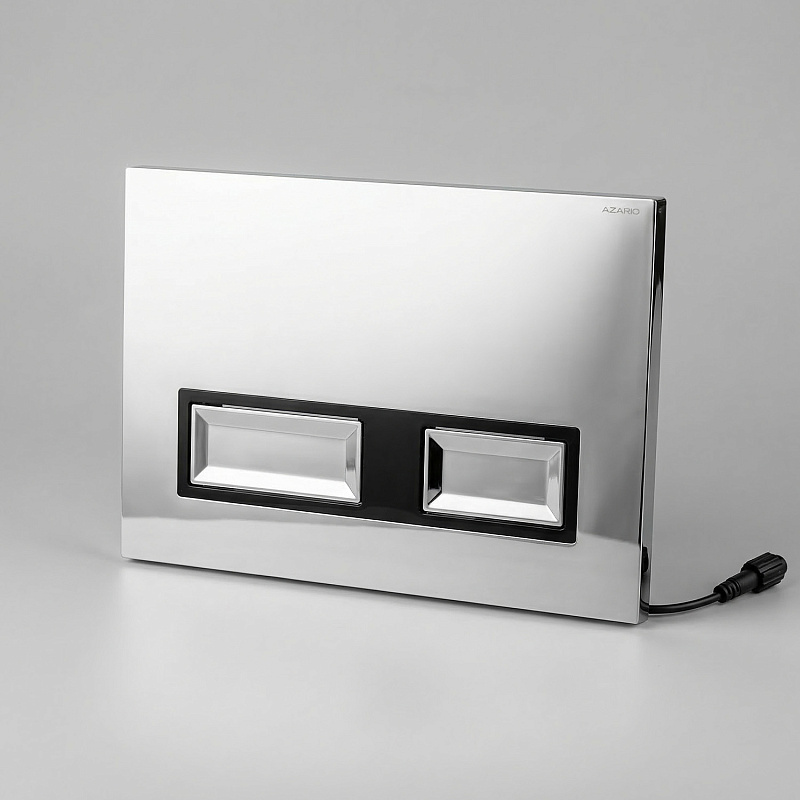 Кнопка смыва Azario. Пластик. Двойная, механическая. Оснащена инфракрасными датчиками для бесконтактного смыва. Подходит к инсталляции Azario коллекции NEW AZ-510A. Размер изделия (Ш/Г/В): 240x30x162 мм. Цвет – хром глянцевый. Работают также от батареек АА 4 шт. Материал изделия - пластик.
