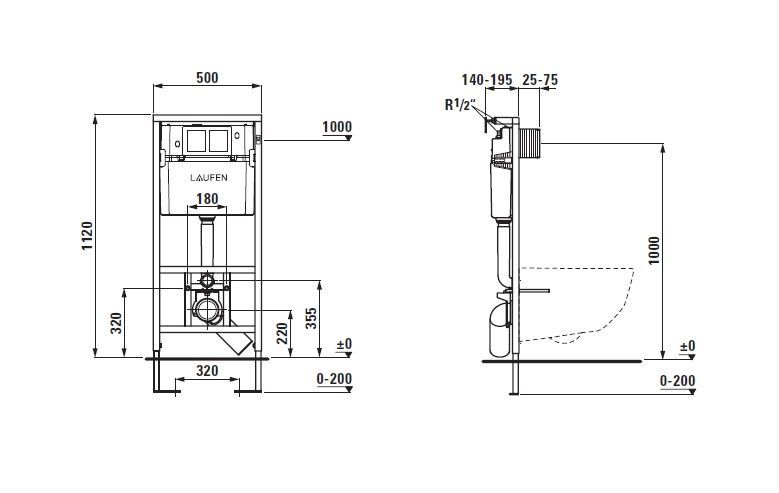 Laufen CW1 8.9466.0.000.000.1 Инсталляция для унитаза. Скрытый каркас, с бачком для подвесного унитаза, двойной слив 6/3 л, регулируется до 4,5/3 л.
