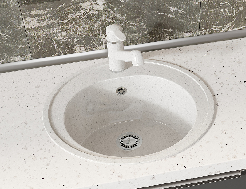 —Кухонная мойка AZARIO Solo 505x505x190 искусственный мрамор, сифон в комплекте, цвет белый крап (CS00105233)