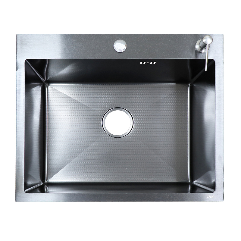—Кухонная мойка AZARIO NICOLE 600х500х220 нержавеющая сталь, в комплекте сифон, диспенсер, коландер, черный соты (AZB6050H)