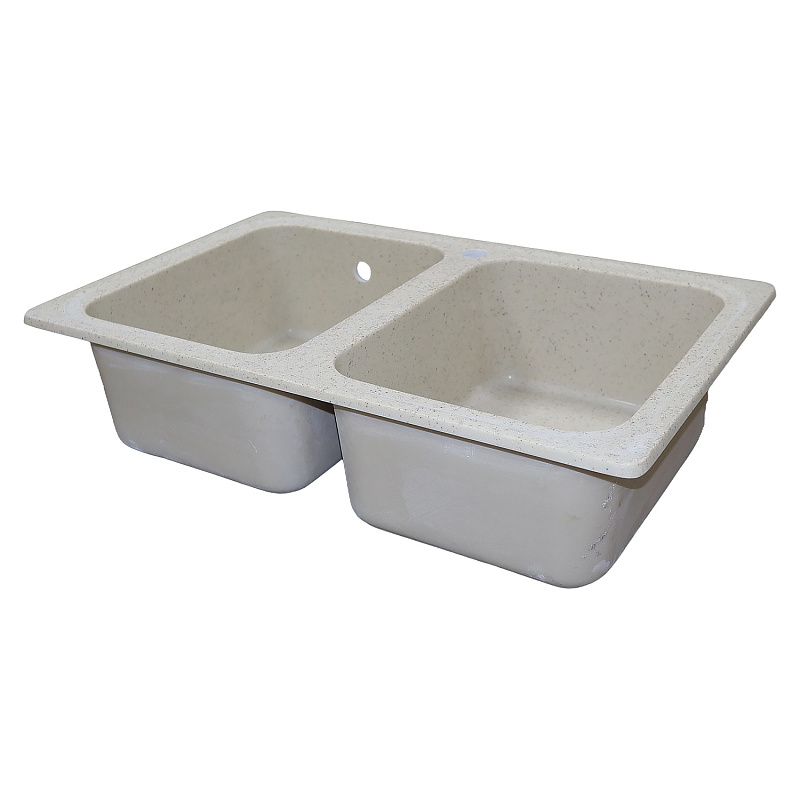 —Кухонная мойка AZARIO Alba 780x490x190 двойная, искусственный мрамор, сифон в комплекте, цвет песочный (CS00105218)