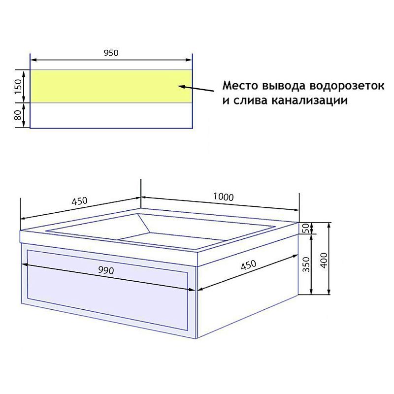 —Комплект Тумба Azario Belloni 100 1000х450х400 подвесная, с раковиной Астория 100, синий (CS00098075)