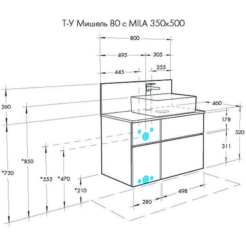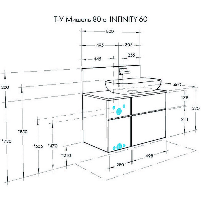 Размеры столешницы с панелью (ШхВхД): 80х26х46 см.