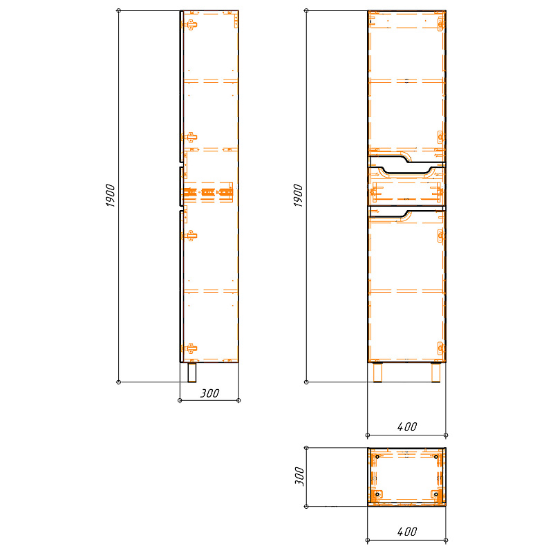 —Пенал напольный Azario KANTRI 40 400х300х1900 левосторонний, белый глянцевый (CS00097261)
