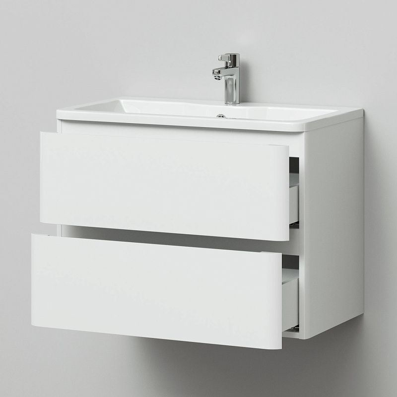 —Комплект тумба Итана Roberto 80 (795х56х06) подвесная, с раковиной Adel 80, белый глянец (375043)