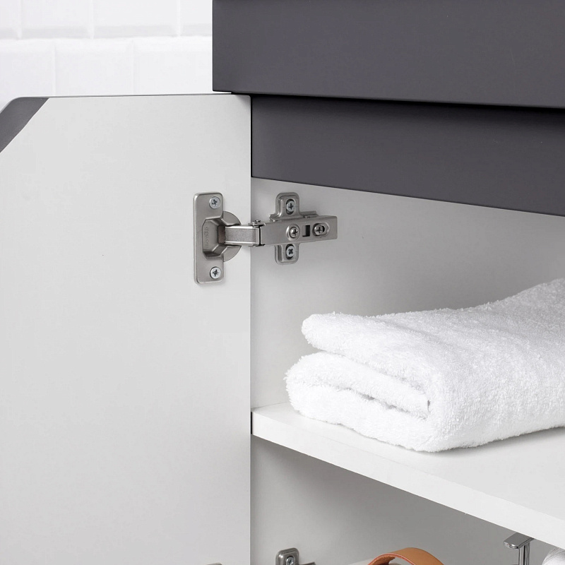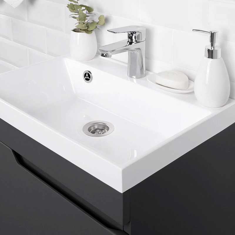 Подвесная тумба из коллекции Sky -это сочетание современной стилистики и богатого функционала. Подвесной способ установки дает возможность не только визуально увеличить пространство, но и обеспечивает быстрый и удобный доступ для уборки. Тумба покрыта ПВХ-пленкой графитового цвета, что обеспечивает изделию привлекательный внешний вид, а также износостойкость и долговечность. Качественные направляющие скрытого монтажа обеспечивают плавное открывание и закрывание ящичков. Ручки интегрированы в фасад, что исключает возможность случайного удара о фурнитуру.