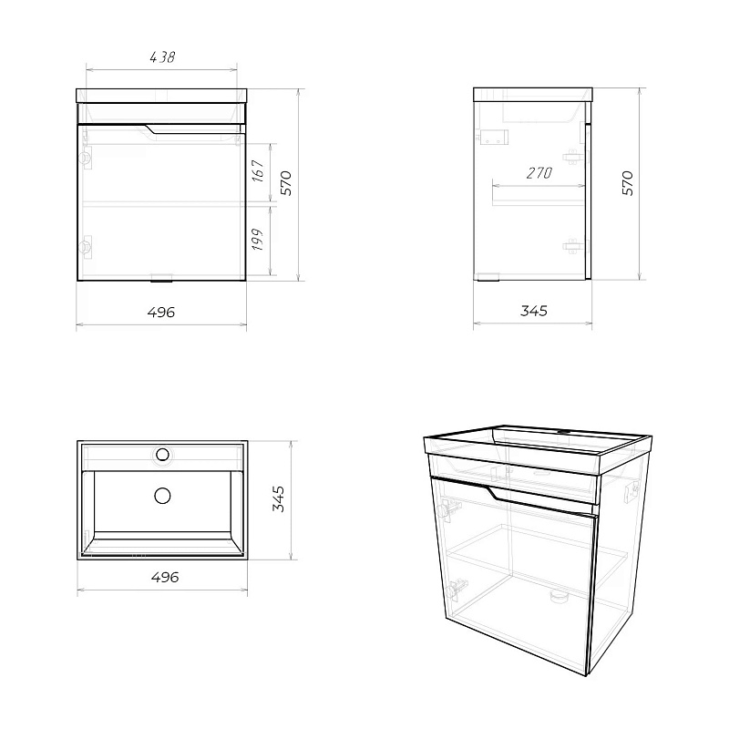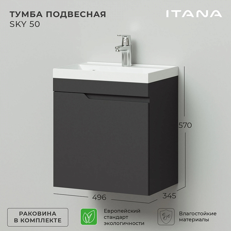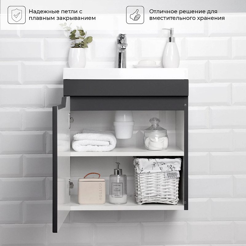 —Комплект тумба Итана Sky 50 493х343х570 подвесная, с раковиной Clarissa 50, графит (CS00091691)