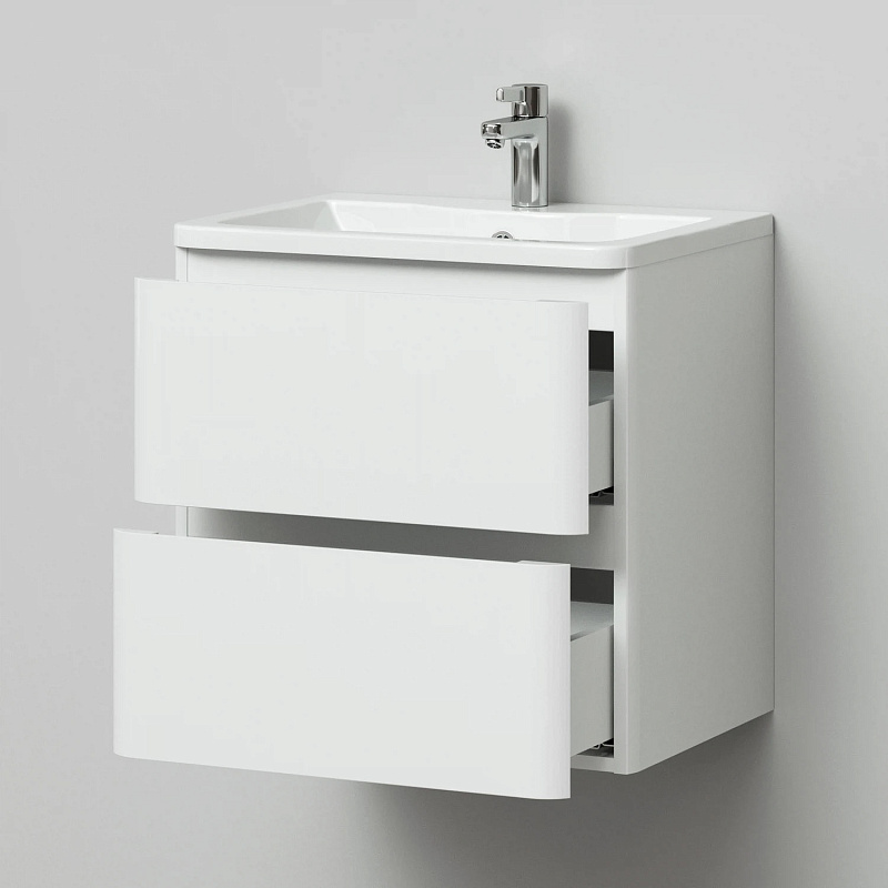 Идеальный белый глянец в сочетании с современным лаконичным дизайном-это коллекция Roberto.Эстетика изящества и минимализма-скругленные фасады,фрезерованные ручки,умывальник из литьевого мрамора,со скругленными углами.Подвесная тумба выполнена из влагозащищенного МДФ,покрытого белоснежной глянцевой эмалью.Качественная фурнитура с доводчиками.Плавное и бесшумное закрывание ящиков.Универсальный пластиковый вырез под сифон.Умывальник из литьевого мрамора полностью закрывает корпус тумбы,что обеспечивает дополнительную защиту от воды.Подвесной способ установки дает возможность не только визуально увеличить пространство, но и обеспечивает быстрый и удобный доступ для уборки.Мебель способна вместить в себя достаточно много вещей.Изысканность,простота и гармоничность-все сошлось в этой прекрасной коллекции!