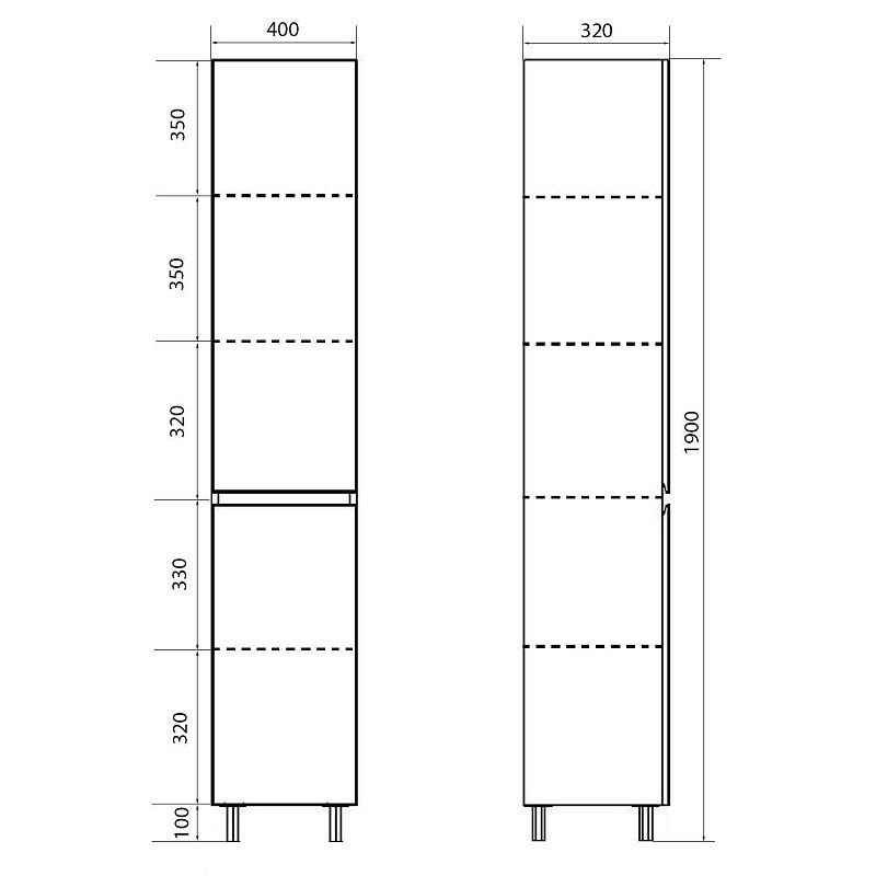 Пенал Azario Viola 40 400х320х1900 напольный, бежевый (CS00096743)