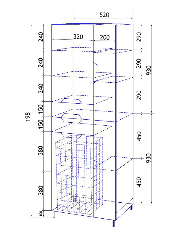 Пенал Loranto Стиль 52 с корзиной для белья, 520х1970х330, белый (CS00024679)