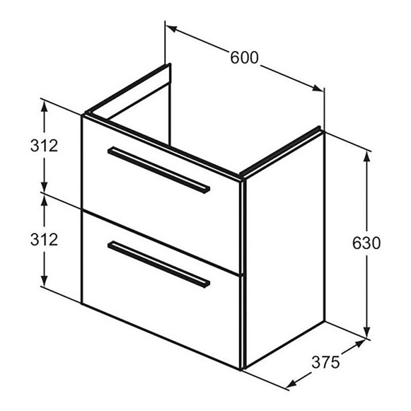 i.Life S Тумба для раковины 60 см, для подвесного монтажа, с 2-мя ящиками, система плавного закрытия, ручки в комплект не включены (заказываются дополнительно), с крепежом. Для монтажа с раковиной i.Life S Vanity 61 см T459001. Рекомендуется сифон Space Saving EE23033967 (заказывается дополнительно), поверхность/цвет Quartz Grey Matt (Кварцево-серый матовый).