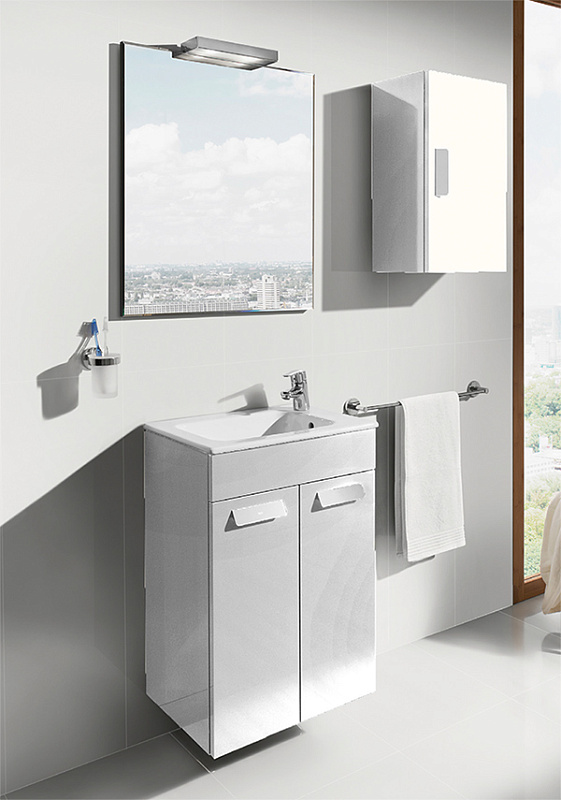 Тумба для раковины Debba в современном стиле от испанского бренда Roca, выполненная из влагостойкой высококачественной ЛДСП и МДФ.
