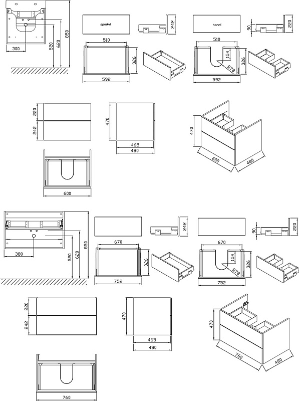 Шкаф под раковину Ravak Rosa II, 76*49*47 см, подвесной, белый (X000001293)
