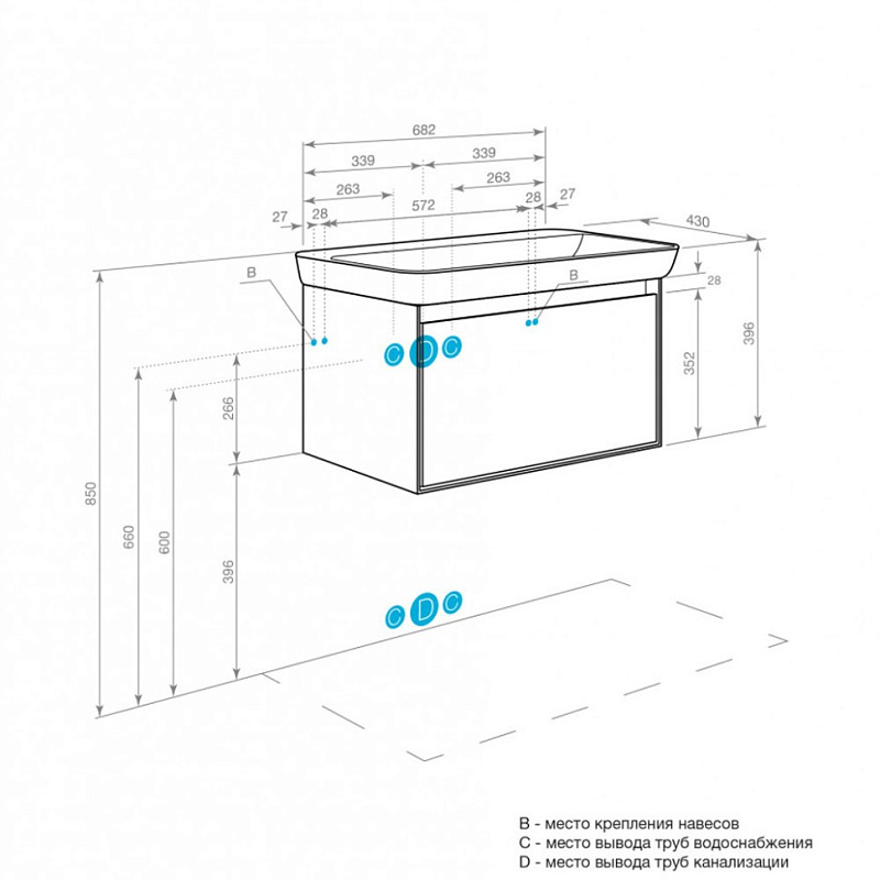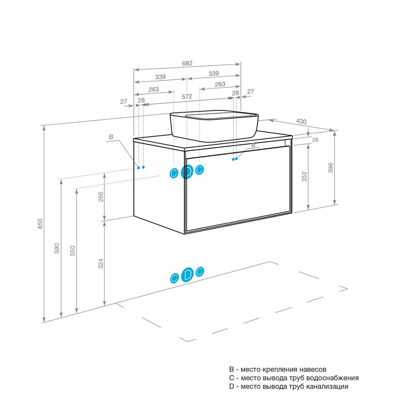 Тумбы Либерти с 1 ящиком могут быть дополнены мебельной раковиной “Адриана”, которая отличается вместительной чашей и современным дизайном.