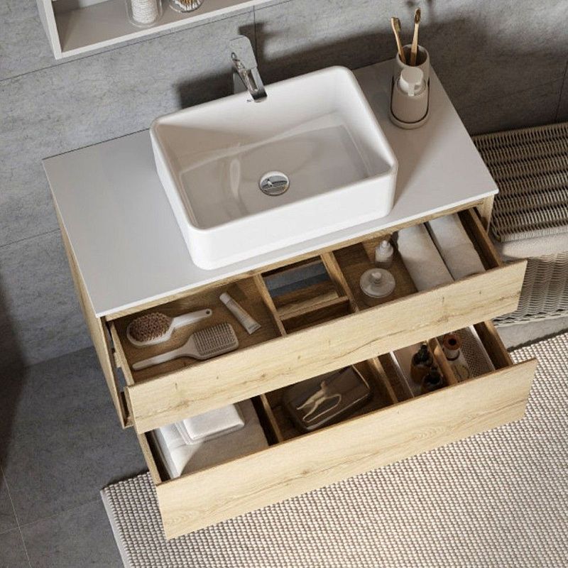 —Тумба под раковину Aquaton Либерти 100, 2 ящика, дуб эльвезия (1A279601LYC70)