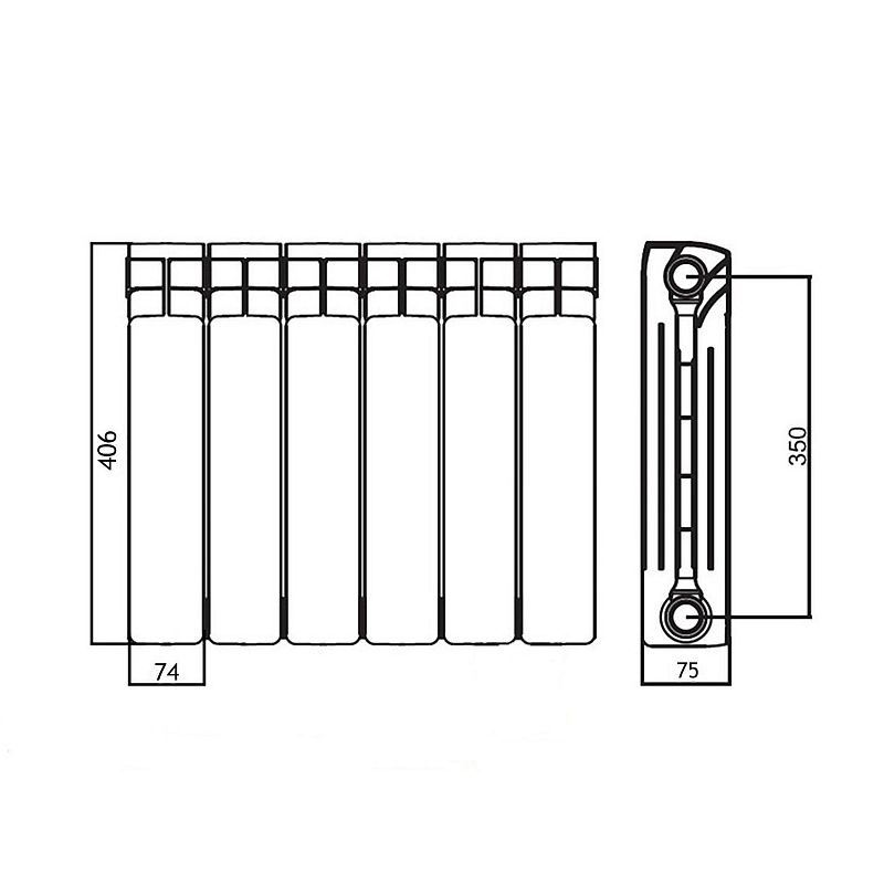 Радиатор биметаллический AZARIO BM350/80 8 секций, белый (BM350/80/8)
