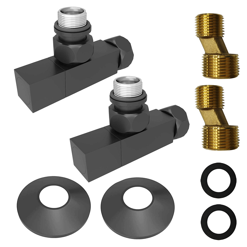 Соединение угловое с квадратным вентилем для полотенцесушителей Azario гайка-штуцер 3/4"х1/2", графит (AZ83907FW)