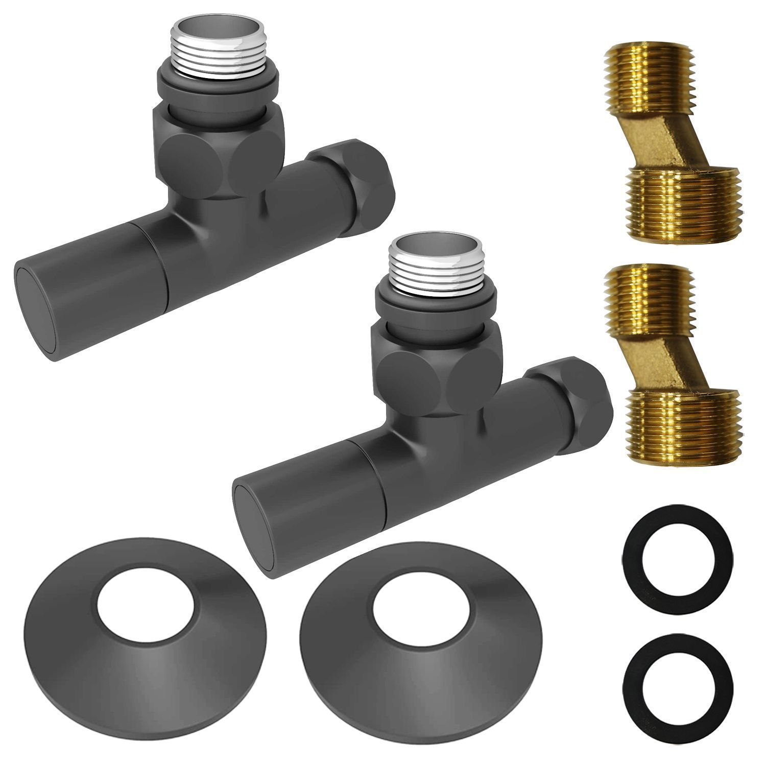 —Соединение угловое с круглым вентилем для полотенцесушителей Azario гайка-штуцер 3/4"х1/2", графит (AZ83908FW)