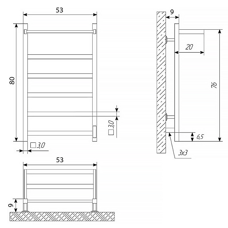 Оснащение: световой индикатор на корпусе / нагревательный кабель, расположенный внутри электрического полотенцесушителя / крепления