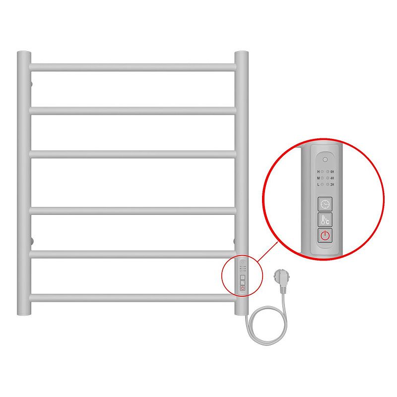 Полотенцесушитель электрический AZARIO Парма 500/600 6 секций, диммер справа, белый (AZ10856W)
