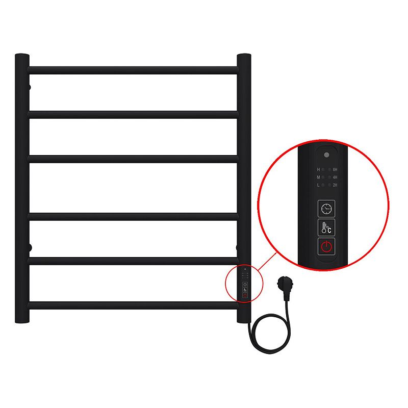 Полотенцесушитель электрический AZARIO Парма 500/600 6 секций, диммер справа, черный (AZ10856B)