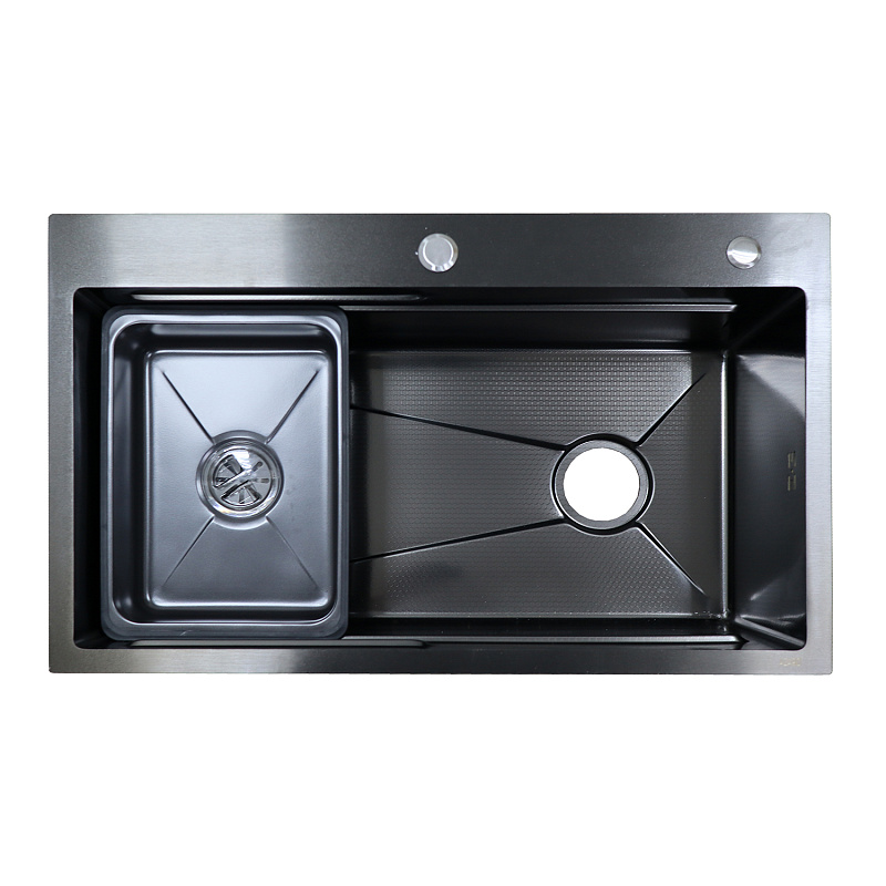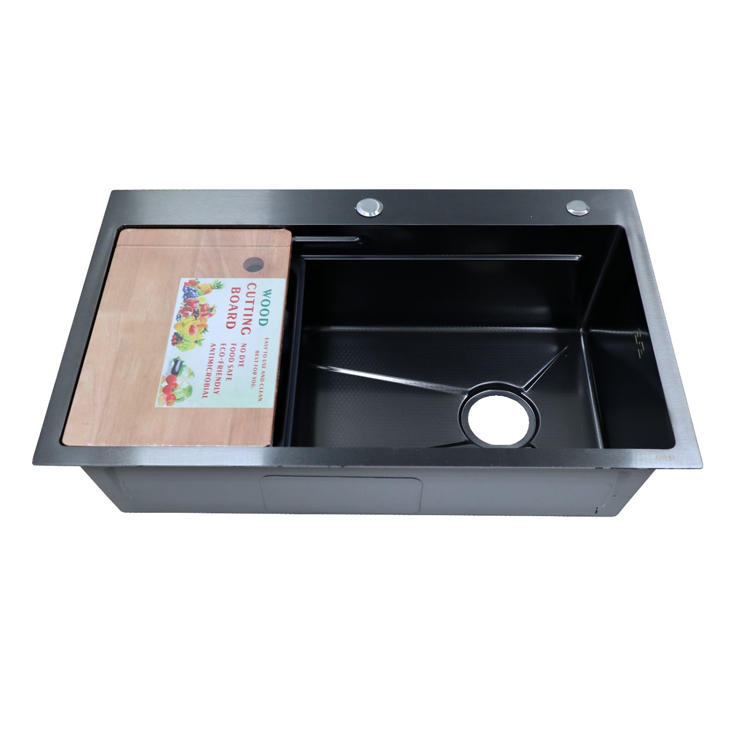 —Кухонная мойка AZARIO Наоми (750*460*220) нержавеющая сталь черный соты (сифон, сифон, корзина, доска) (AZB7546H)