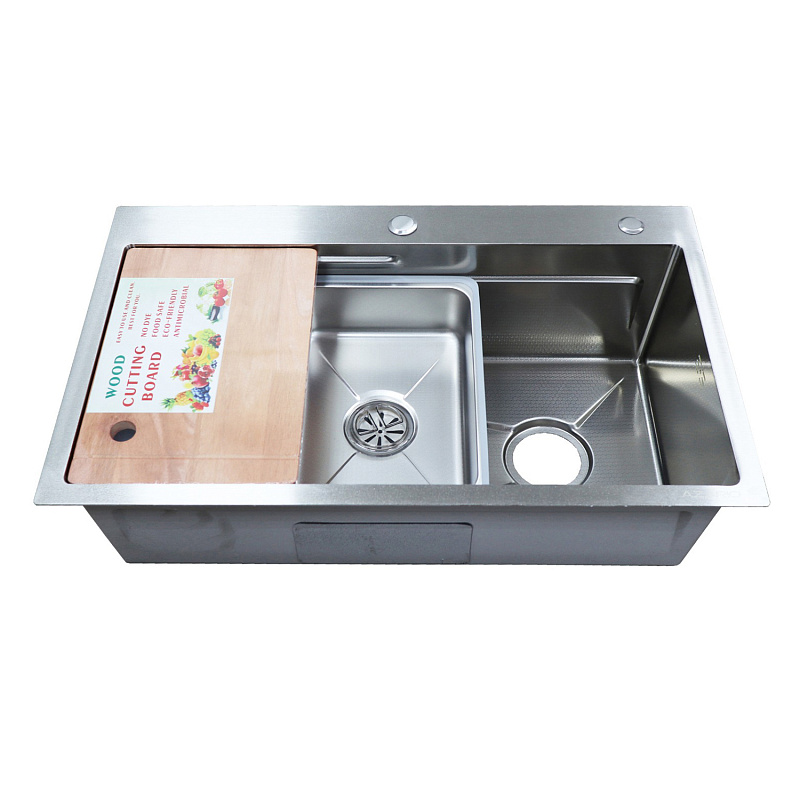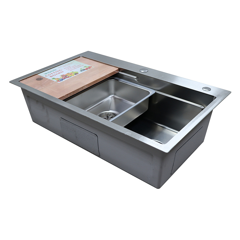 —Кухонная мойка AZARIO NAOMI (750*460*220) нержавеющая сталь серебро соты (сифон, корзина, доска) (AZS7546H)