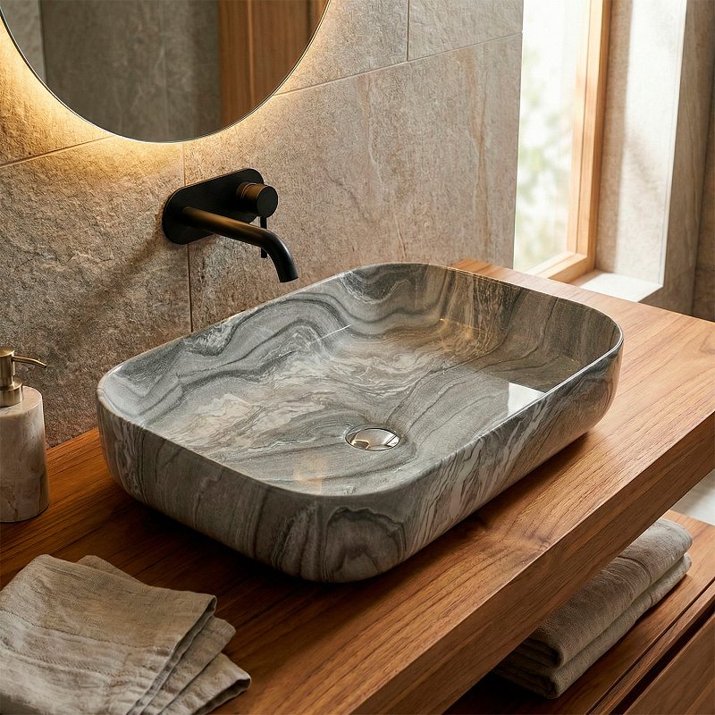 Раковина Azario накладная 605х425х140 цвет мрамор (AZ-78625)