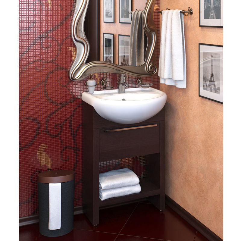 Мебельный умывальник "Арго" 55  предполагает установку на мебельную тумбу. При небольших размерах, умывальник очень удобен в использовании благодаря глубокой чаше; 1 отверстие под смеситель расположено по центру умывальника.