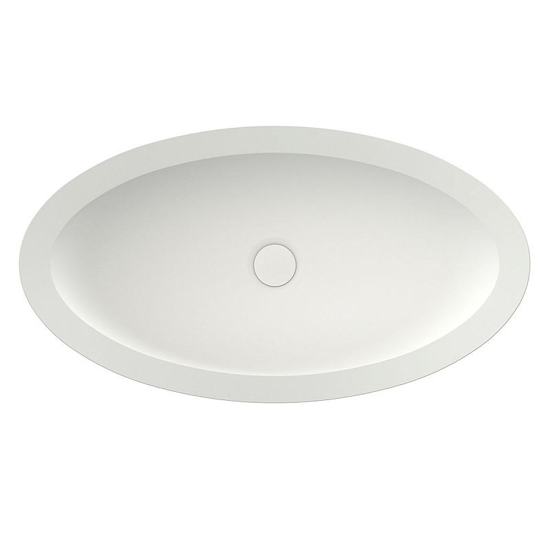 Раковина накладная из искусственного камня белая матовая, с белым матовым донным клапаном