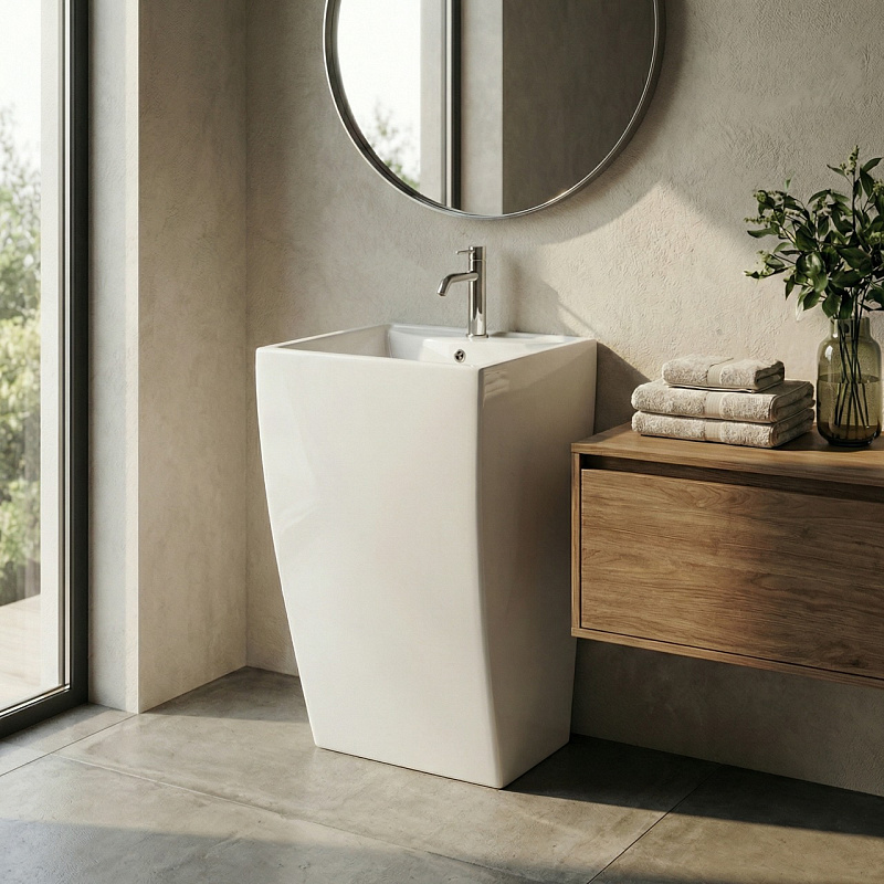 —Раковина напольная Azario Комелла 480х420х855 отдельностоящая, прямоугольная, белый глянцевый (AZ-314)