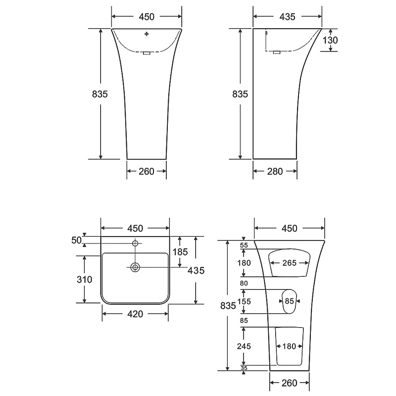 Раковина напольная AZARIO FRETTA SQUARE 450х435х835 — стильное и функциональное решение для ванной комнаты. Изготовленная из высококачественного белого санфаянса, эта отдельностоящая раковина отличается прочностью и долговечностью. Прямоугольная форма с четкими геометрическими линиями придаёт интерьеру современный и элегантный вид. Размеры 450х435х835 мм обеспечивают комфортное использование и удобство монтажа. Идеально подходит для создания минималистичного дизайна и гармоничного сочетания с другими элементами ванной комнаты.
