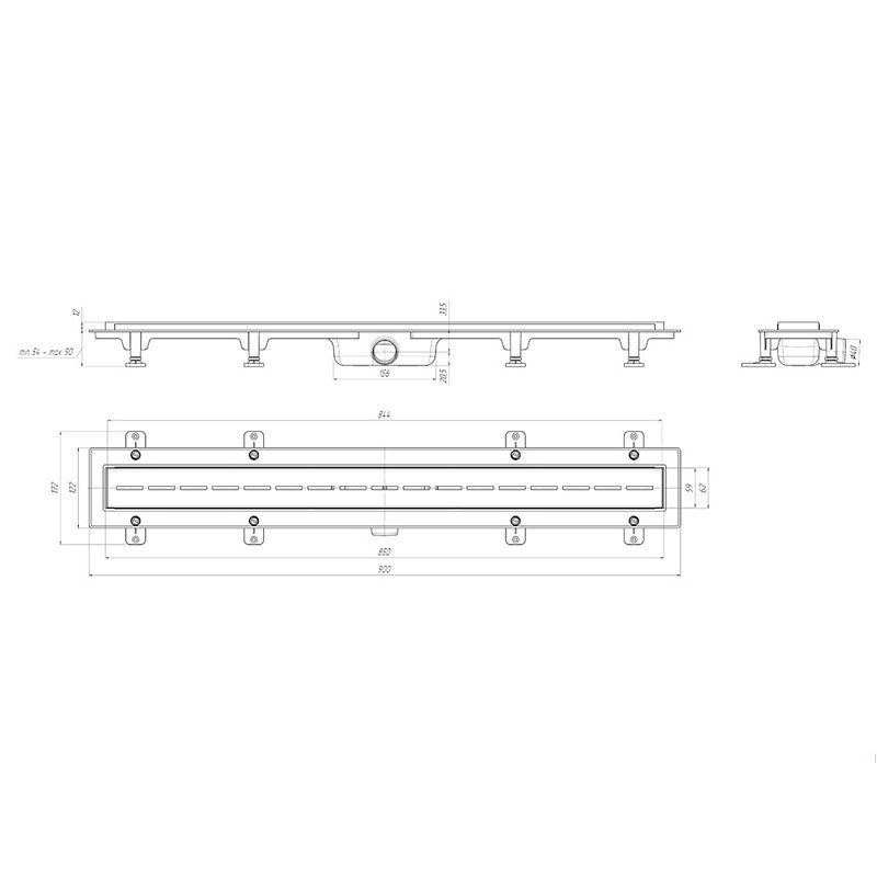 Трап линейный пластиковый АНИ Пласт DN40 с сухим затвором и глянцевой решёткой Киль 850х62 мм (TLQ1585G)