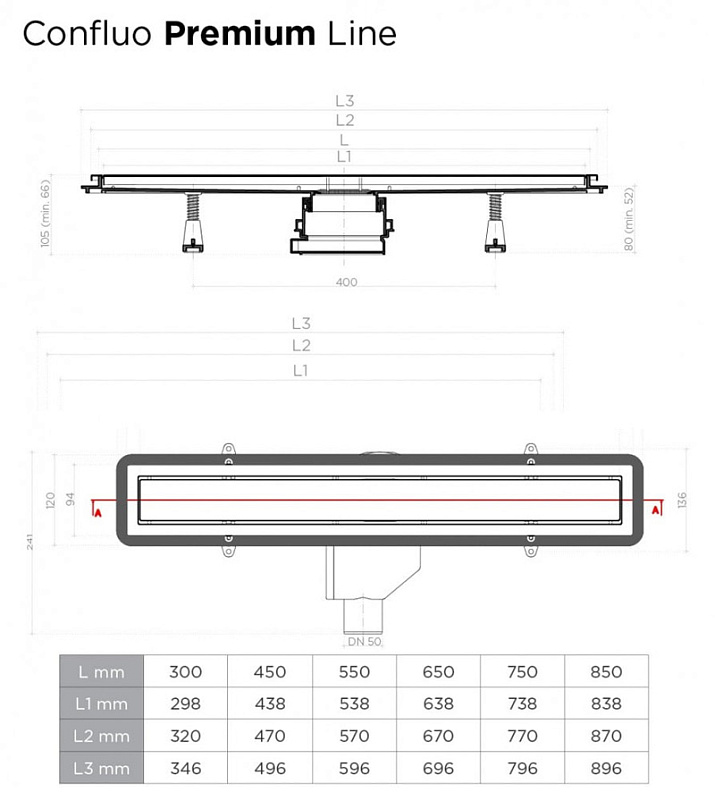 Душевой лоток Pestan Confluo Premium Line 950
