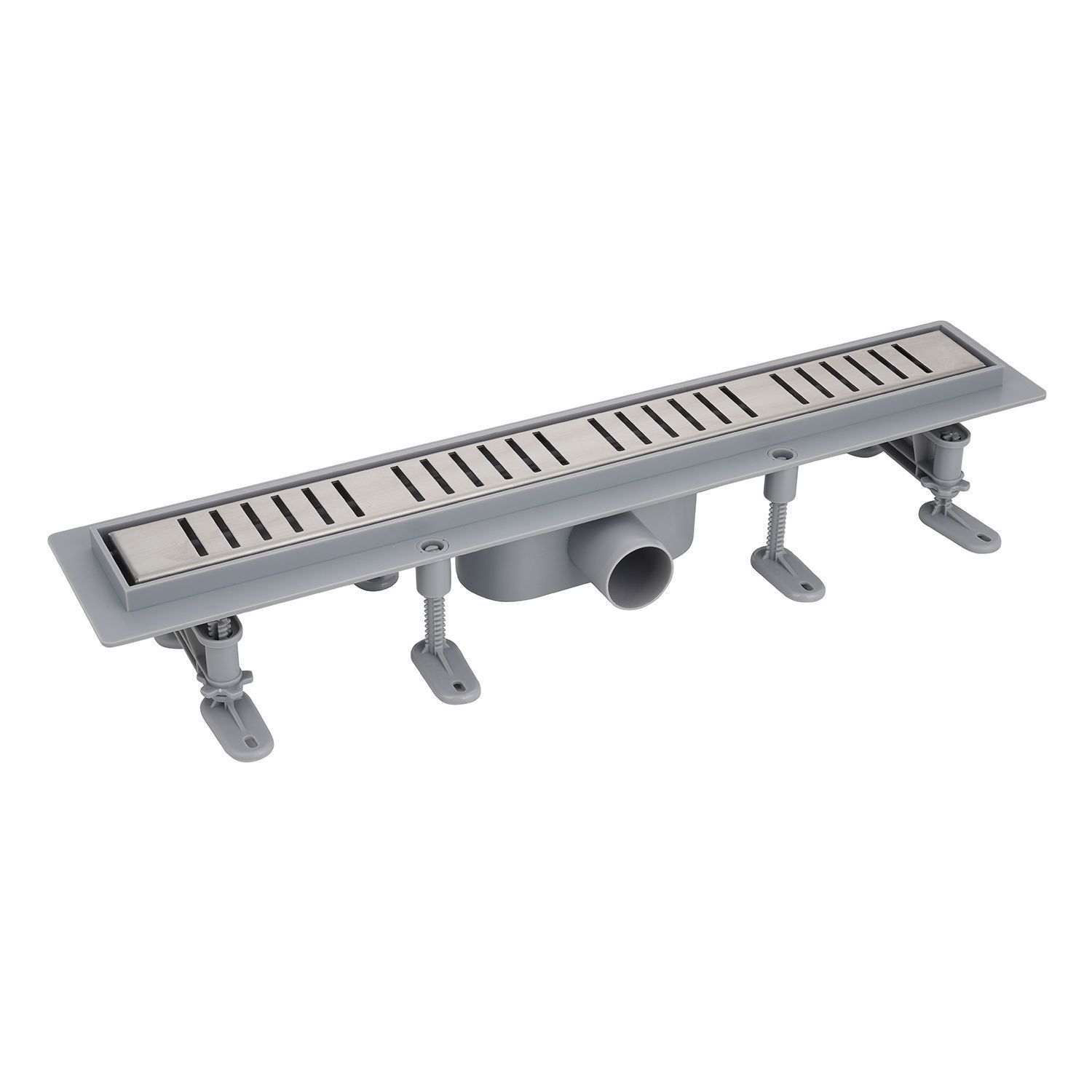Душевой пластиковый желоб AZARIO  500 мм сухой/мокрый гидрозатвор с металлической решеткой с горизонтальным выходом D40 (переходник D50),   - идеальное решение для эффективного сбора, и отведения жидкости в канализацию с поверхности пола. Они предназначены для монтажа в ванных комнатах, душевых, санузлах квартир, загородных домов и общественных местах.
