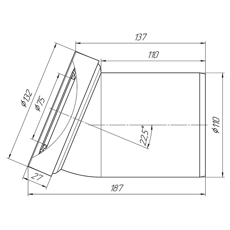 Труба для подключения унитаза к канализации короткая угол 22,5° диаметр 110мм. Для пластиковых труб