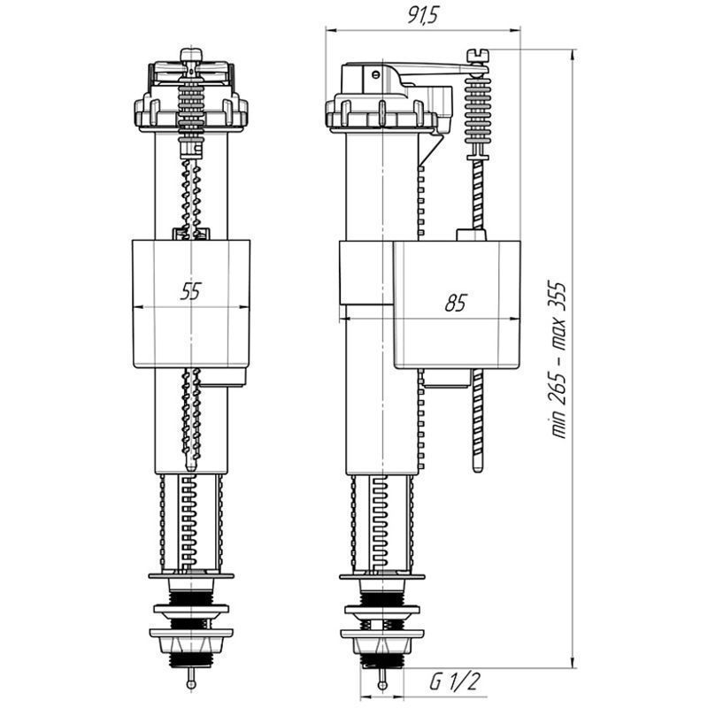 Наливной механизм для бачка унитаза АНИ Пласт WC5520 с нижней подводкой сочетает преимущества полипропиленового корпуса и латунного штуцера. Модель с регулировкой высоты от 265 до 355 мм обеспечивает универсальность установки для различных типов бачков (стойка механизма поворачивается, устанавливается нужная высота, после чего поворачивается обратно).