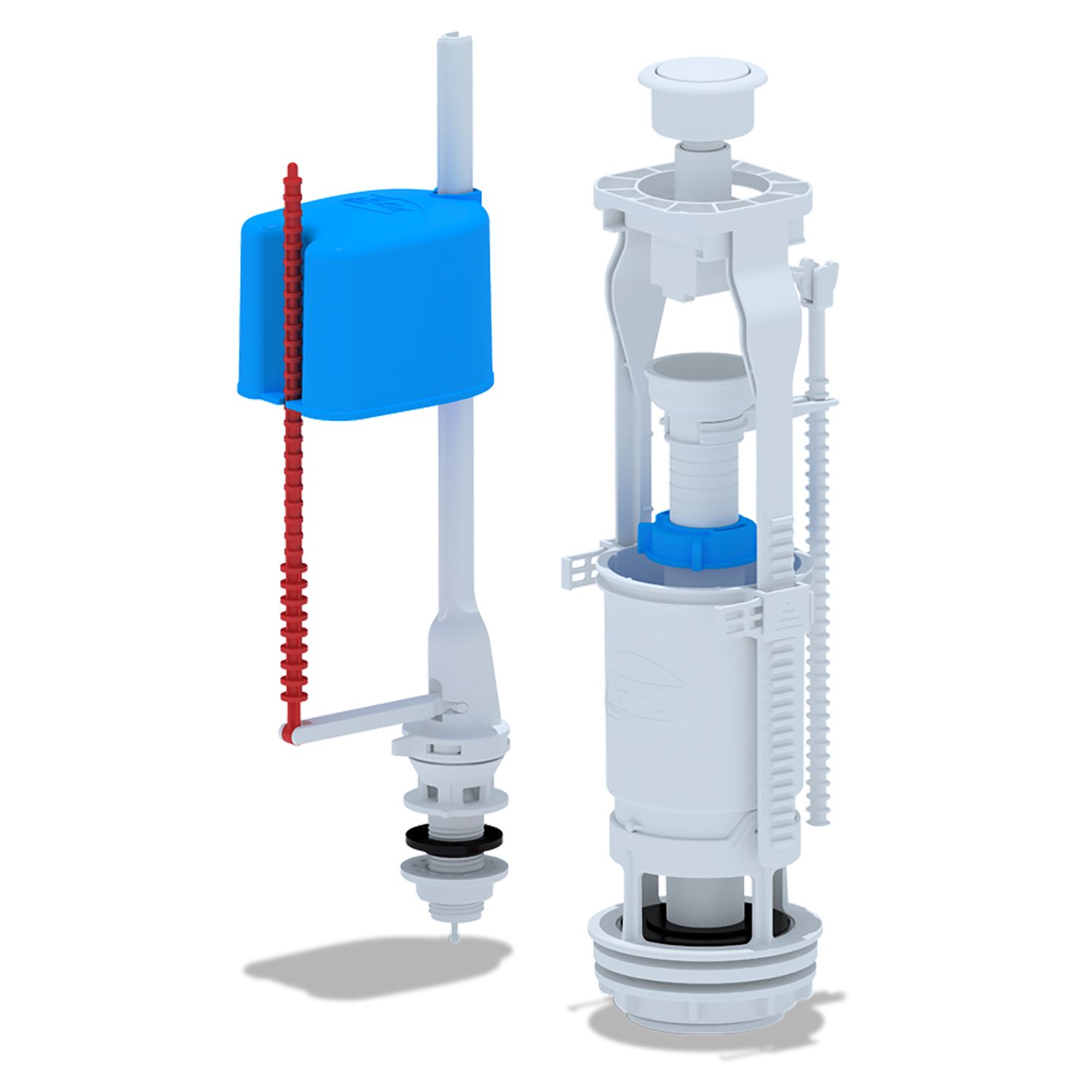 Наливной механизм с нижней подводкой и пластиковой резьбой диаметром G 1/2, регулировка по высоте 234-328 мм.