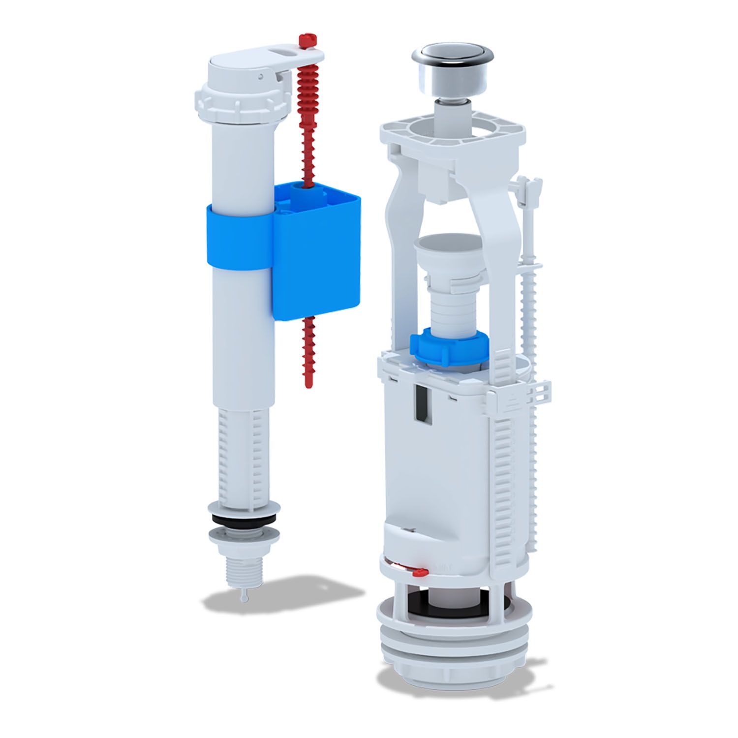 Набор для бачка унитаза АНИ пласт WC8510C. Наливной механизм с нижней подводкой и пластиковой резьбой диаметром 1/2", регулировка по высоте 265-355 мм (стойка механизма поворачивается, устанавливается нужная высота, после чего поворачивается обратно).