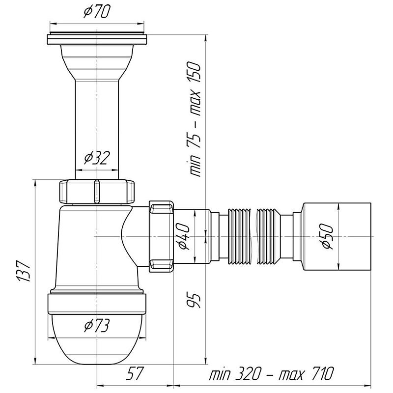 • Сифон сливной АНИ пласт C0510 для кухонных моек с диаметром слива 50-60 мм