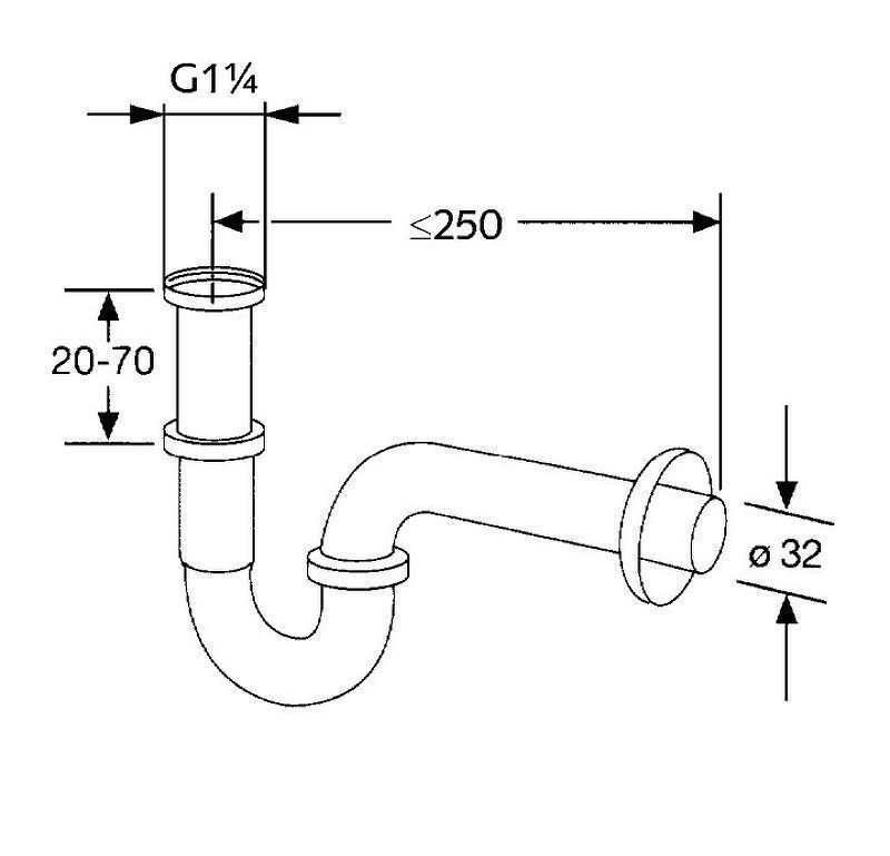 Сифон для раковины Kludi 1025005-00 трубчатого типа. Цвет: хром.